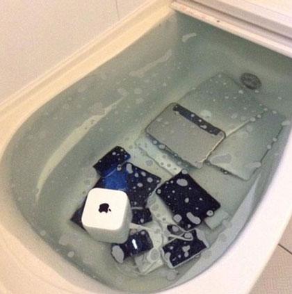 Phát hiện người yêu phản bội, cô nàng người Nhật Bản đã mang hết số laptop, điện thoại đắt tiền của đối phương gửi gắm vào bồn tắm và xả ngập nước.