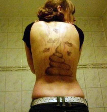 Với lý do hẹn lần cuối để ôn lại kỉ niệm xưa cũ, anh chàng thợ xăm đã chuốc say cô bạn gái và lặng lẽ dành 4 tiếng đồng hồ để xăm lên lưng người cũ hình ảnh một đống chất thải cùng ruồi nhặng bay tứ tung.