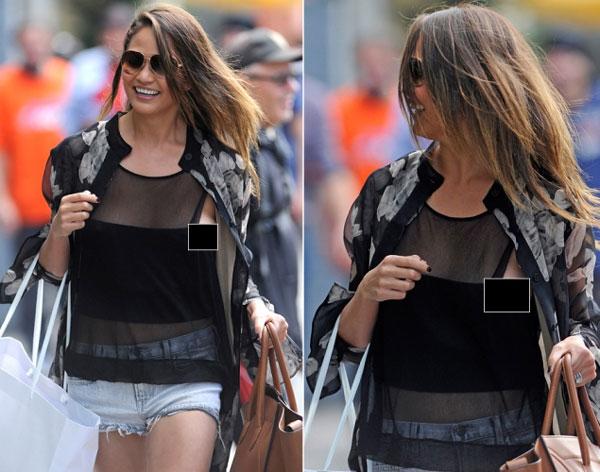 Chrissy Teigen vẹo cả ngực ra bên ngoài.