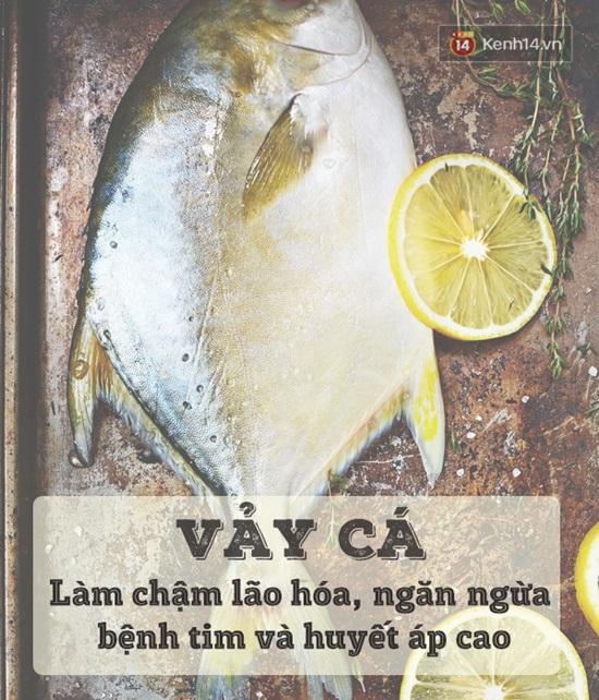 Nghiên cứu của nhiều nhà dinh dưỡng đã cho thấy trong vảy cá chứa chất lecithin. Lecithin tham gia vào quá trình cấu tạo nên màng tế bào và có tác dụng làm chậm quá trình lão hóa cũng như tăng cường trí nhớ. Ngoài ra, chúng còn giúp ngăn ngừa cao huyết áp, bệnh tim và tăng khả năng hấp thụ thức ăn.