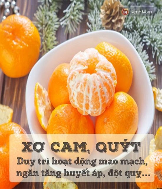 Nhiều người có thói quen bóc hết xơ cam, quýt rồi mới ăn. Nhưng chúng ta lại lỡ bỏ đi phần chứa rất nhiều dinh dưỡng thiết yếu cho cơ thể. Hàm lượng rutin cao trong xơ của những trái cây này giúp duy trì hoạt động của mao mạch. Nhờ đó mà những chứng bệnh như: tăng huyết áp, đột quỵ, xuất huyết võng mạc,…được ngăn ngừa đáng kể.