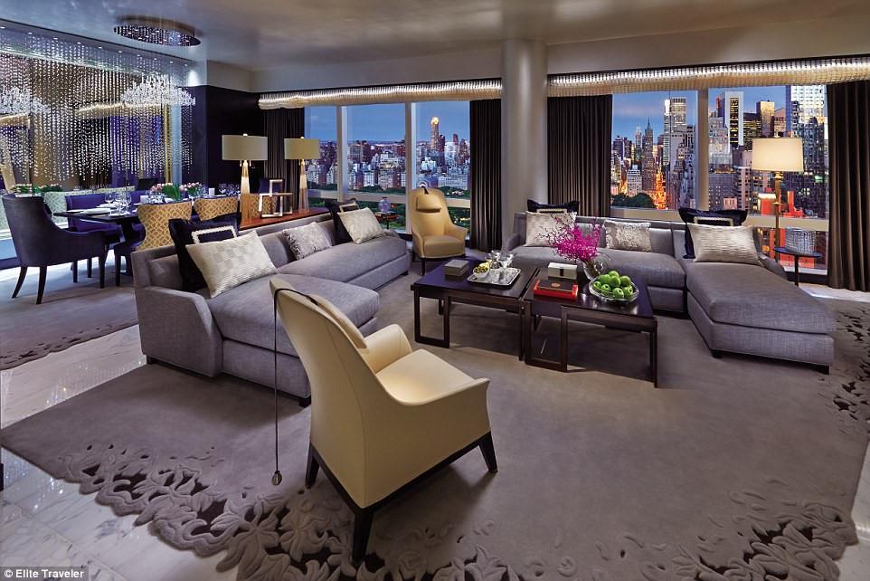 8. Phòng Suite 5000, khách sạn Mandarin Oriental, New York, Mỹ (36.000 USD): Rộng 330 m2, phòng suite này nằm ở tầng 50 của khách sạn, với các tác phẩm nghệ thuật đắt giá và bộ sưu tập phim đáng ghen tị. Ngoài ra, khách nghỉ tại đây còn có chuyên gia tạo phong cách riêng và tủ đồ do Dior đảm trách.