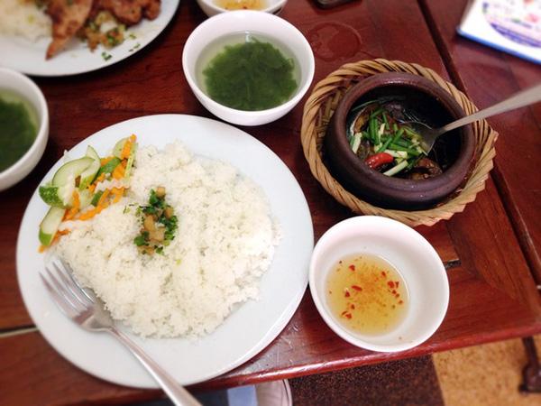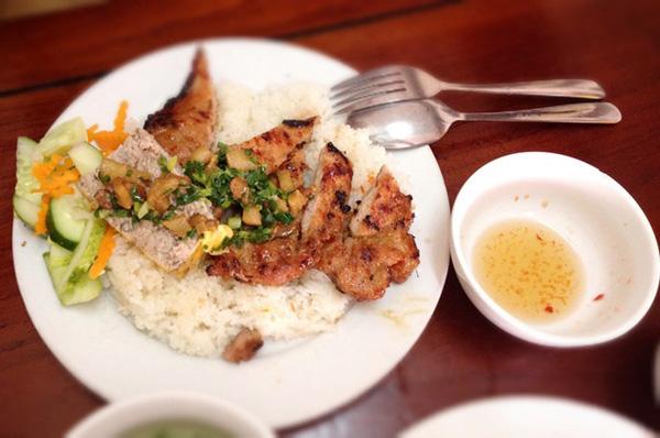 Sườn ở đây cũng tẩm ướp khéo, thiên về vị ngọt của người miền Nam nhưng vẫn rất vừa miệng thực khách Bắc. Sườn vừa nướng cháy cạnh, thơm phức làm khách nhìn thôi đã phải thòm thèm. Cắn vào miếng sườn, ta thấy ngay độ mềm thơm từ loại thịt tươi ngon. Một điểm cộng nữa là các món cơm luôn có mỡ hành, tóp mỡ. Hành phi thơm, tóp mỡ ngậy giòn tan - món dân dã nhưng có khả năng gây nghiện không ngờ.