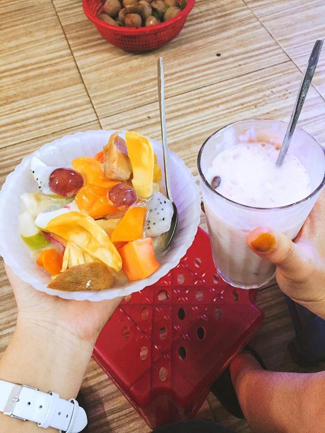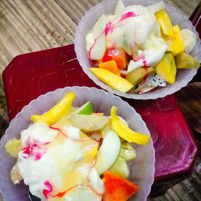 Giá ở đây rất hợp lý, hoa quả dầm là 14.000 đồng/cốc, thêm sữa chua là 16.000 đồng. Ngoài ra bạn có thể chọn thêm caramen hoặc các loại hoa quả dầm.