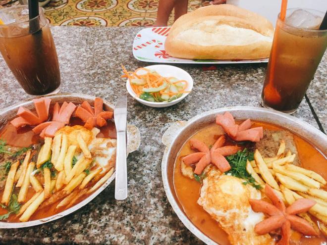 Một phần đầy đủ ở đây gồm pate, trứng, xúc xích, lạp xưởng và khoai chiên. Đi kèm đó là nước sốt chua ngọt khá vừa vị. Miếng pate ở đây khá lớn, ăn khá thơm, ngậy, xúc xích, lạp xưởng xắt 4 chiên khá vừa tới nên vừa ngon, vừa đẹp mắt.