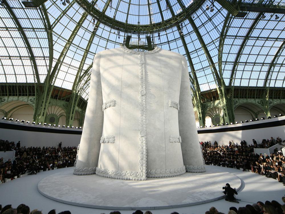 Show diễn Haute Couture mùa Xuân Hè 2008 là nơi để Karl Lagerfeld tôn vinh Coco Chanel với chiếc áo mang tính biểu tượng kinh điển của hãng. Những người yêu thời trang hẳn chẳng ai còn lạ lẫm với thiết kế áo khoác vải tweed mang phom dáng cứng cáp mà đầy thanh lịch. Hình mẫu này trở thành cảm hứng xuyên suốt của show diễn. Chiếc áo khổng lồ dựng sừng sững giữa vòng tròn trung tâm khiến những người có mặt đều thấy choáng ngợp.