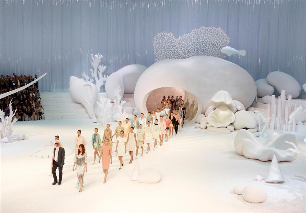 Bảo tàng Grand Palais một lần nữa "thay hình đổi dạng", chứng minh sự sáng tạo không biên giới của Karl Lagerfeld. Lần này, chủ đề ông lựa chọn là bãi biển mùa hè. Khó ai tin không gian trong nhà có thể hóa thành một bãi biển đầy chân thực, có trời xanh thăm thẳm, có bãi cát trải dài và cả sóng nước dập dìu! Cuối sàn diễn là các lều gỗ trên bãi biển với sự túc trực của các nhân viên cứu hộ của Chanel. Các khách mời được khuyến cáo trước nhiều tuần lễ là không mang giày cao gót để tránh tình trạng bị lún cát.