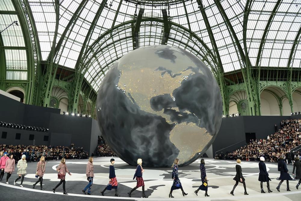 Mang khẩu hiệu "Chanel Goes Global", show Thu Đông 2013 của Chanel hướng đến mục đích giúp Chanel được "toàn cầu hóa". Sân khấu với quả địa cầu khổng lồ ở chính giữa đã làm rất tốt nhiệm vụ quảng bá thông điệp của chương trình. Khi nhìn gần, trên quả địa cầu là hàng trăm chiếc cờ Chanel được cắm khắp nơi, khẳng định sự "vươn dài" của thương hiệu này trong làng thời trang thế giới.
