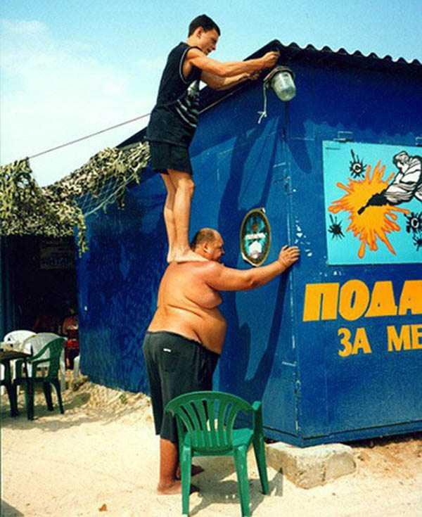 Có anh đây rồi chú còn cần gì phải tìm thang nữa hả?
