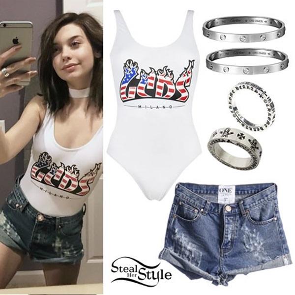 Amanda Steele tinh nghịch với bodysuit dáng tank top và short jean.