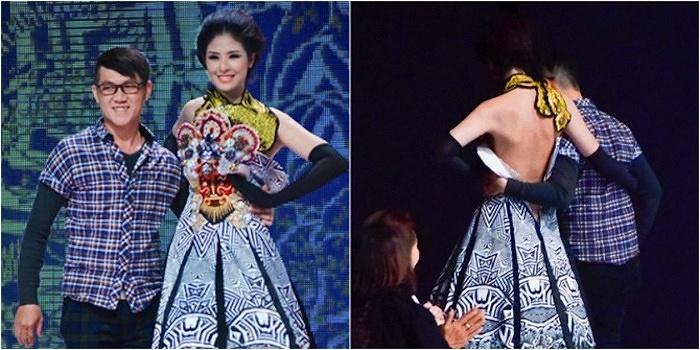 Hoa hậu Ngọc Hân cũng từng gây xôn xao khi bị tuột áo trên sàn diễn, tuy nhiên với