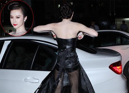 Angela Phương Trinh liên tục chỉnh đốn trang phục vì phần váy quá nặng nề