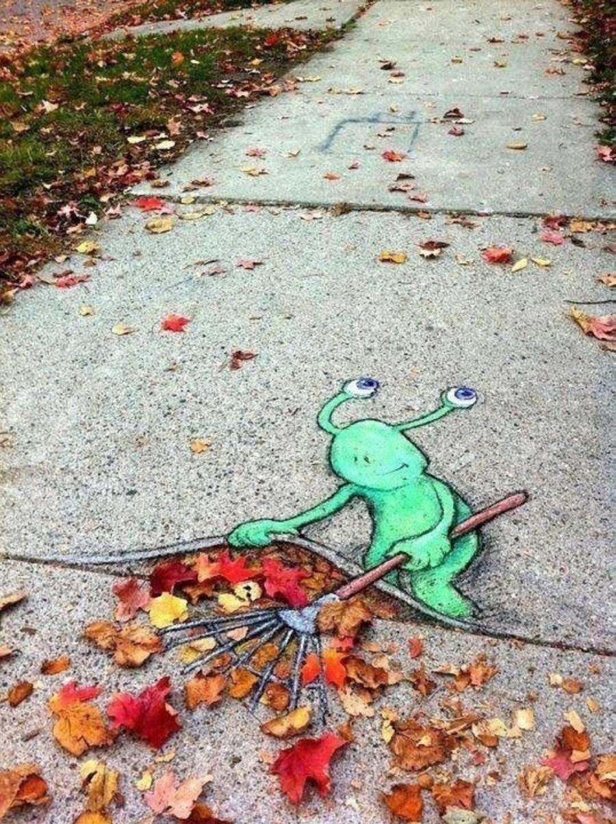 nghệ sĩ David Zinn vẽ bằng phấn.