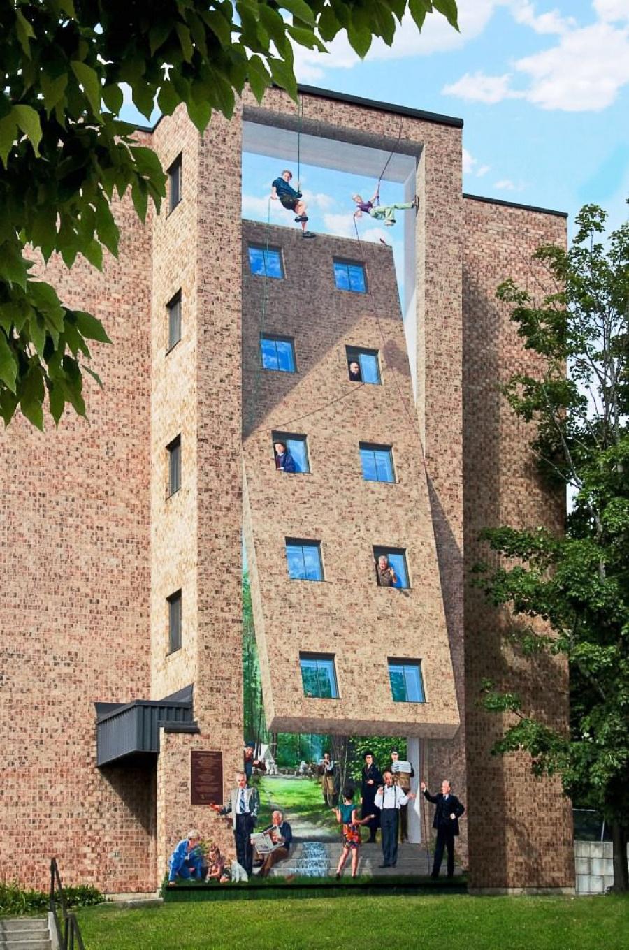 5. Với bàn tay tài ba của các nghệ sĩ, ngôi nhà như bị vỡ đi một phần,