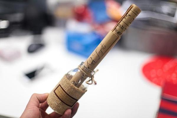 Tấm thiệp "lệnh truy nã" được cất giữ trong chai thủy tinh khiến nhiều người "choáng" bởi sự công phu và sáng tạo