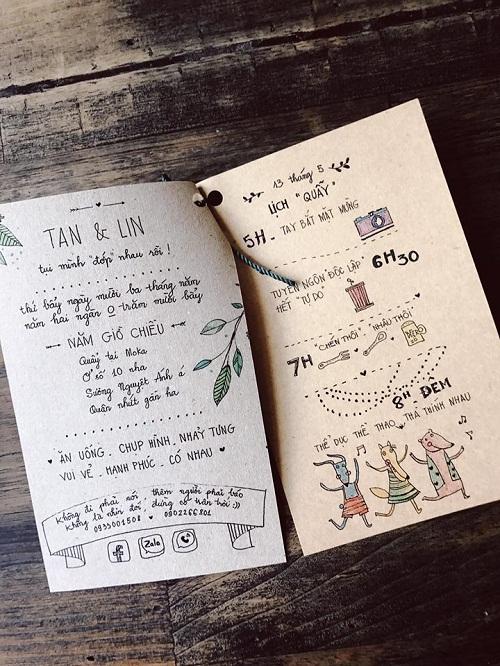 Tấm thiệp cưới độc đáo này được cư dân mạng hết lời khen ngợi bởi sự sáng tạo "có một không hai". Theo tìm hiểu, chủ nhân của tác phẩm nói trên là chú rể Thanh Tùng - cô dâu Hoài Thu. Vì muốn lưu giữ kỉ niệm đặc biệt cho ngày kết hôn nên cả hai đã nghĩ ra cách mời cưới đặc biệt.