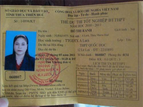 Đó là trường hợp thí sinh Hồ Thị Ranh (sinh năm 1975, trú tại huyện A Lưới, Thừa Thiên - Huế) với 9 lần dự thi tốt nghiệp THPT.