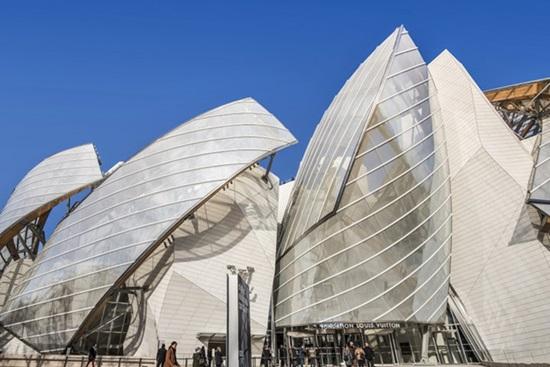 Với chủ đề biển cả, tòa nhà Louis Vuitton Fondation của Frank Gehry được phủ bằng 12 cánh buồm kính cuồn cuộn.