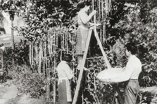 Năm 1957, BBC cho phát một bộ phim giả ghi lại cảnh những nông dân Thụy Sĩ đang thu hoạch mì ống tươi từ cây kèm lời bình: "Từ nay, spaghetti đã trở thành món ăn cây nhà lá vườn".
