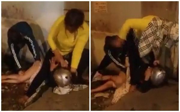 Sau một hồi bị đánh đập liên tục, cô gái trẻ ngã sấp, ngã ngửa, nhóm phụ nữ này còn lột áo, thậm chí đòi cắt trụi tóc của nạn nhân.