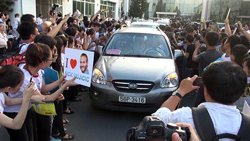 Khi đoàn xe rời sân bay, người hâm mộ và cánh phóng viên