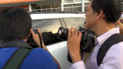 Chiếc xe đón Nick cố ý đỗ chắn ngang lối ra, các phóng viên