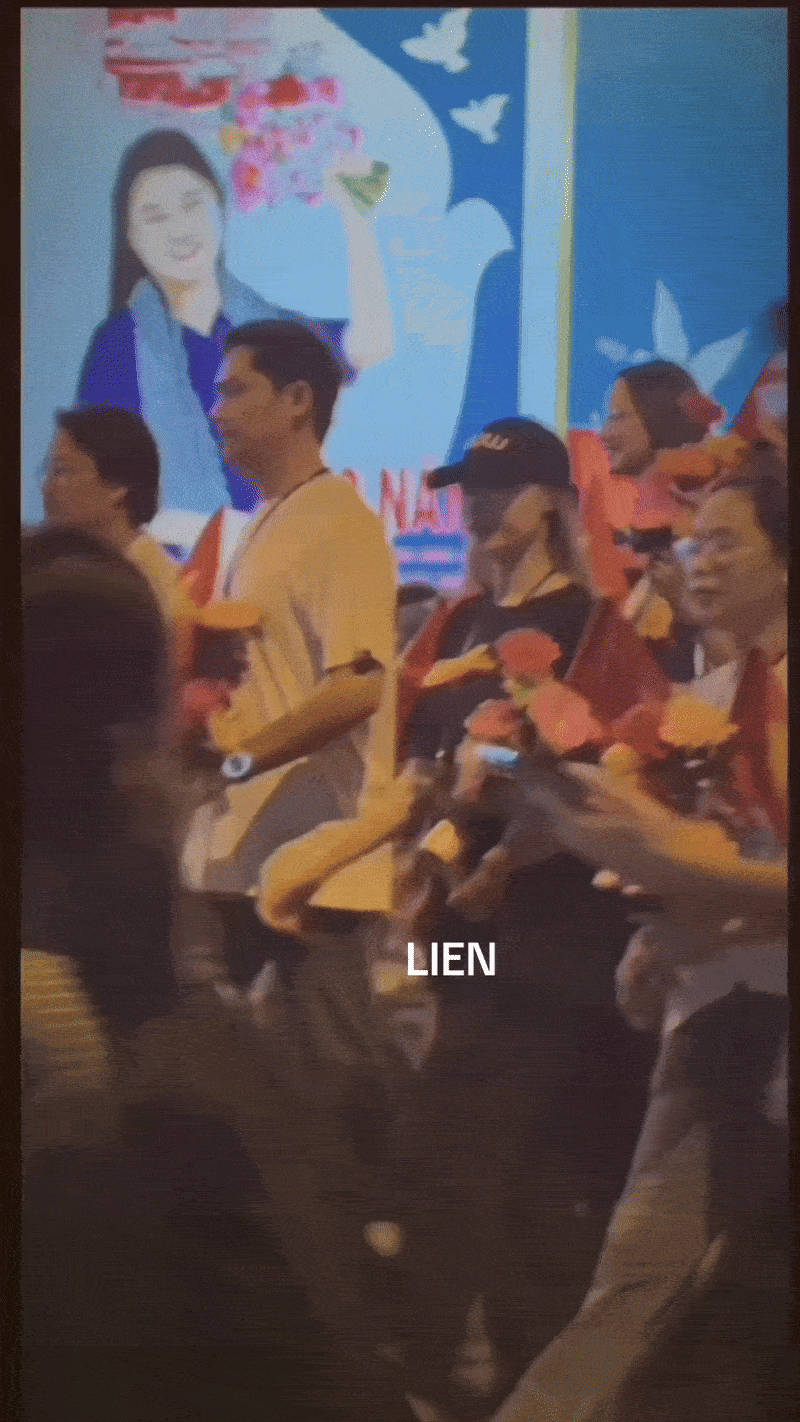 Đáng chú ý, Ninh Dương Lan Ngọc bị bắt gặp khoảnh khắc tái ngộ cùng tình cũ - diễn viên Minh Luân trên đường. Theo đó, trong một đoạn clip ngắn, Lan Ngọc và Minh Luân diện trang phục thoải mái, tay cầm cờ hoa được xếp đứng cạnh nhau trong cùng một hàng.