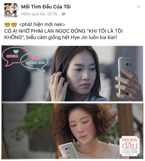 Trên fanpage của bộ phim mới đây cũng chia sẻ một hình ảnh được cho là sự trùng hợp ngẫu nhiên giữa Ninh Dương Lan Ngọc và Hwang Jung Eum - nữ chính của She was pretty bản Hàn.