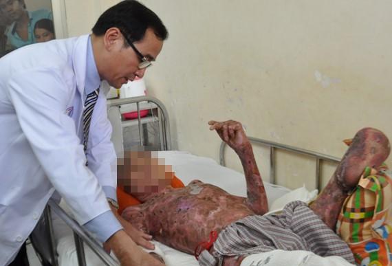 Bác sĩ Hiệp đang điều trị cho bệnh nhân bị bỏng. Ảnh: Khánh Trung.