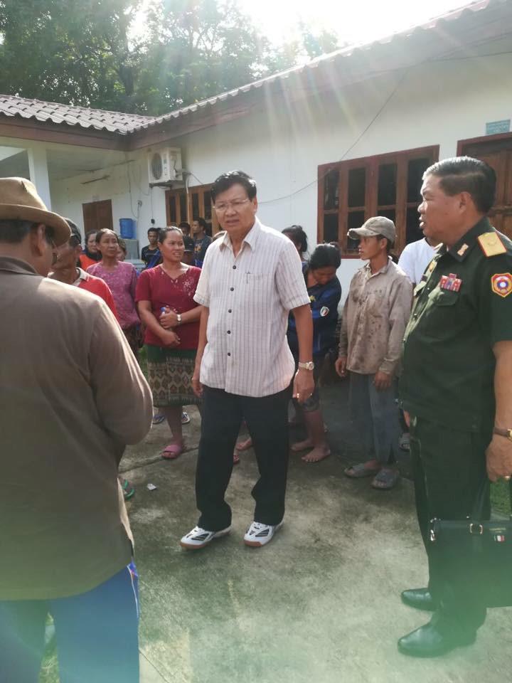 Thủ tướng Thongloun Sisoulith đã hủy bỏ cuộc họp chính phủ hàng tháng để dẫn đầu đoàn quan chức đến huyện Sanamxay chỉ đạo cứu hộ, cứu trợ. Ảnh: ABC Laos.