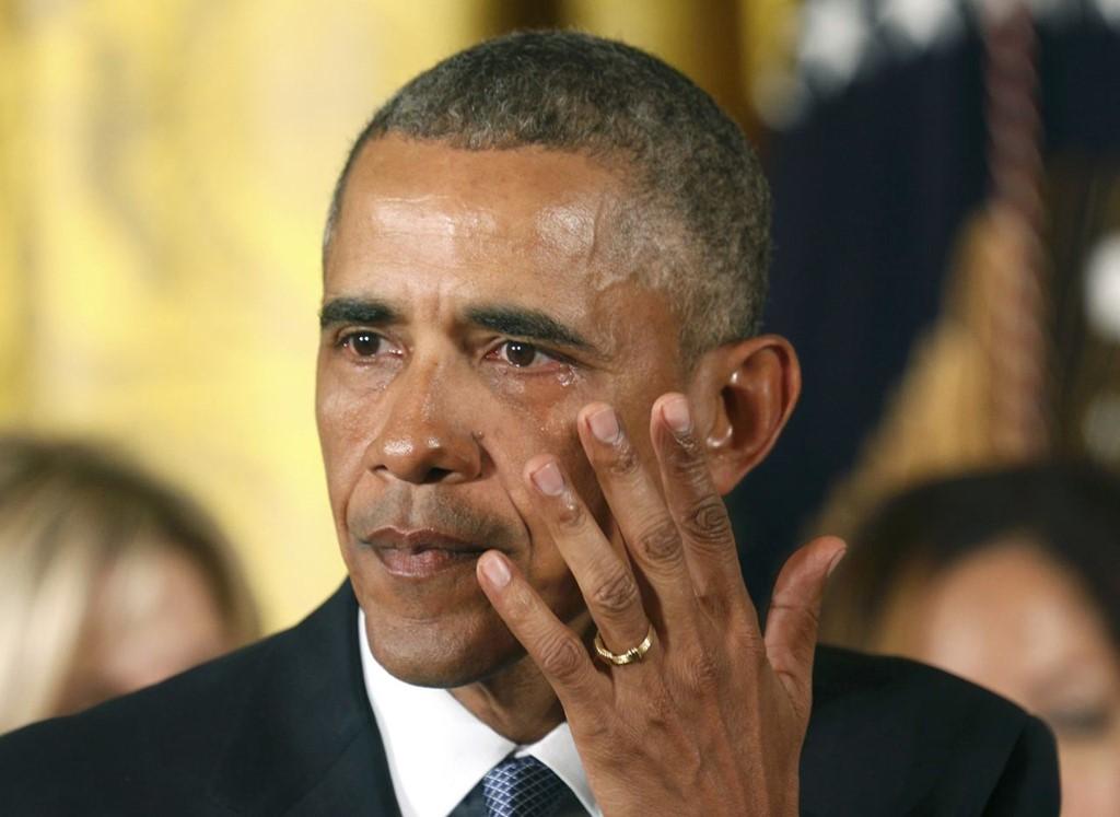 Barack Obama nói "Mỗi khi nghĩ về những đứa trẻ đó, tôi luôn cảm thấy giận dữ" và đưa tay lau đi những giọt nước mắt khi phát biểu về súng đạn.
