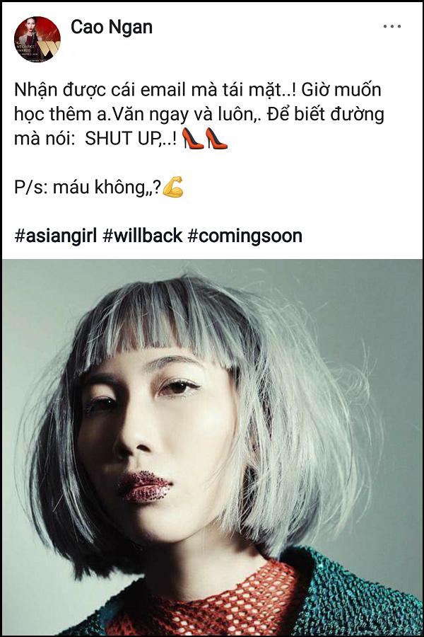 Bên cạnh đó, Cao Ngân cũng tiết lộ mong muốn đi học thêm Anh Văn ngay ở thời điểm này. "Giờ muốn học thêm Anh Văn ngay và luôn, để biết đường mà nói Shut up", cô viết. (Tạm dịch: Shut Up - Hãy im đi!).