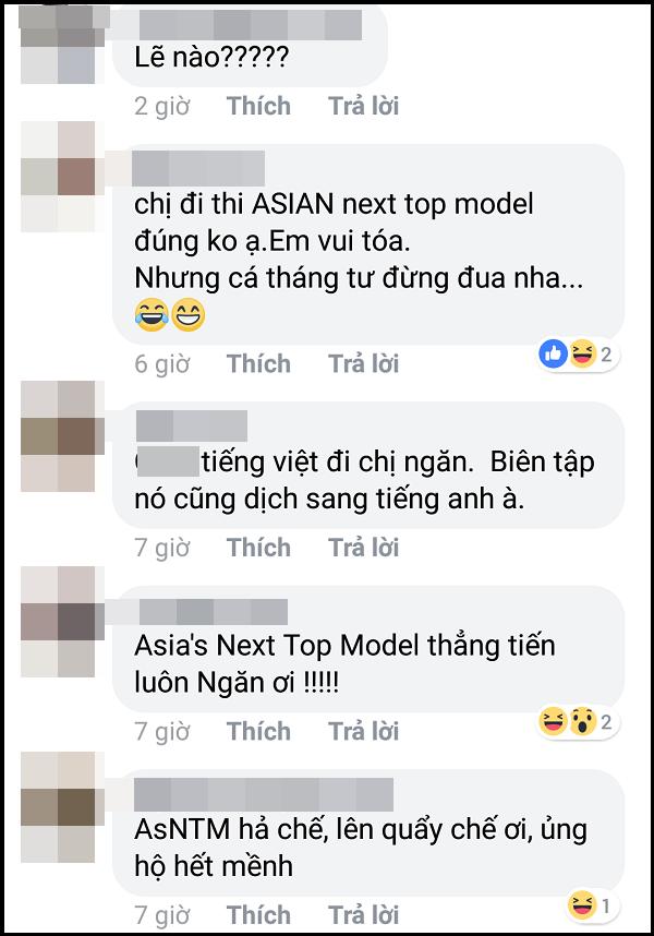 Đáng chú ý, dù biết dòng trạng thái của Cao Ngân đăng tải đúng ngày Cá tháng Tư, song nhiều người hâm mộ vẫn cho rằng thông tin cô tham dự Asia's Next Top Model mùa thứ 6 là đáng tin cậy. Bởi vì đại diện Việt Nam tham dự một cuộc thi quốc tế không phải là chuyện đáng đùa.