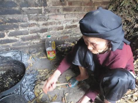Bước vào sân nhà, chúng tôi chăm chú nhìn cụ đang dọn từng đống lá được phơi khô và trải những lá xanh ra phơi nắng để có cái đun bếp, nấu nướng. Trước khi tới đây, chúng tôi được nghe kể về ba người con gái của cụ. Cả ba đều mắc bệnh về vấn đề thần kinh bẩm sinh, khi lên cơn có thể la hét chửi bới om sòm, khi thì như những đứa trẻ tranh giành nhau từ miếng bánh đến cái kẹo thâm chí đánh nhau chảy máu sứt tay.