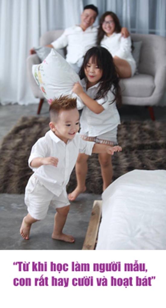 Chị chưa định hướng gì cho con cả. Bây giờ với chị, người mẫu chỉ là sân chơi cho con thôi. Thật ra trước kia con nhút nhát lắm, hay khóc mà cho đi học múa thì kêu đau vì uốn dẻo nên chị cho nghỉ.