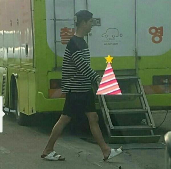 Song Joong Ki mặc quần ngắn đi đôi dép lê yêu thích đến chỗ quay quảng cáo