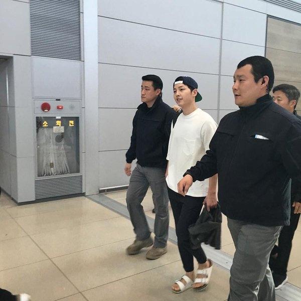 Sau khi sang Mỹ hoàn tất các công việc, Song Joong Ki đã quay trở về Hàn để tiếp tục với lịch trình bận rộn. Mới đây, hình ảnh nam diễn viên “Hậu duệ của mặt trời” xuất hiện trên đường đến quán cà phê để quay một quảng cáo được người hâm mộ chia sẻ trên mạng. Trong ảnh có thể thấy Joong Ki diện đồ thoải mái, đội mũ ngược và rảo bước khá nhanh với thân hình gầy đi trông thấy. Đôi dép lê Song Joong Ki đeo nhanh chóng trở thành đề tài bàn luận của cư dân mạng.