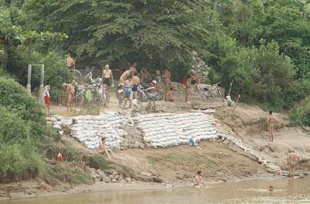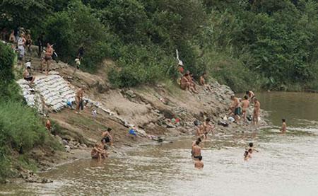 Do thời tiết mùa hè oi bức nên cứ khoảng 17h chiều hàng ngày, dưới bãi sông Hồng đoạn dưới chân cầu Long Biên lại có hàng đoàn người rủ nhau đi tắm sông giải nhiệt. Điều đặc biệt là những người tắm ở đây thường cởi hết quần áo.
