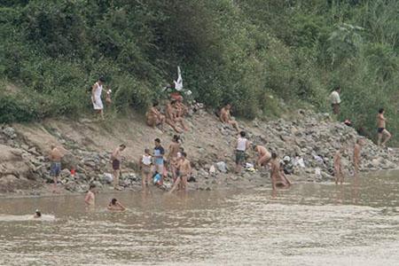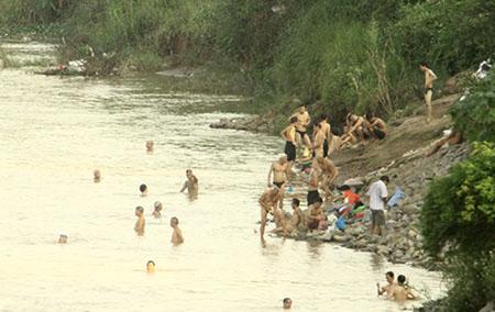 Cũng theo bác Toàn, những người đến đây tắm không phân biệt già hay trẻ, hôm nào nóng thì rất đông có khi lên tới hơn 50 người.