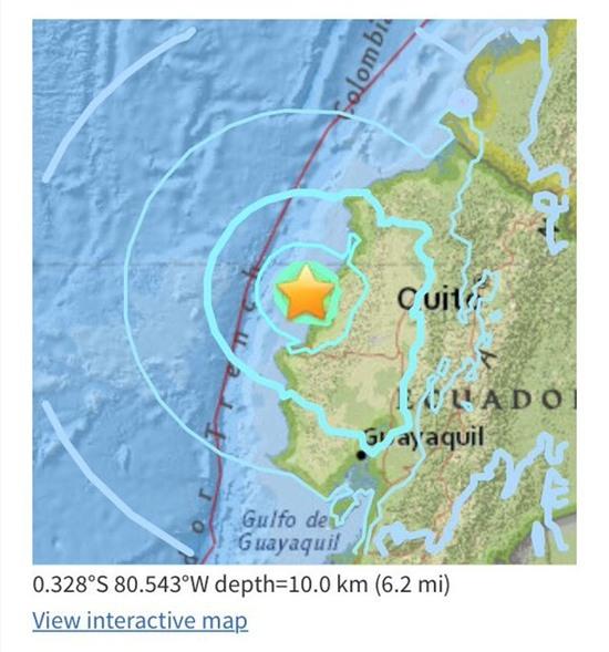 Vị trí tâm chấn của vụ động đất mới nhất tại Ecuador (Nguồn: Twitter/Kyle Underwood)