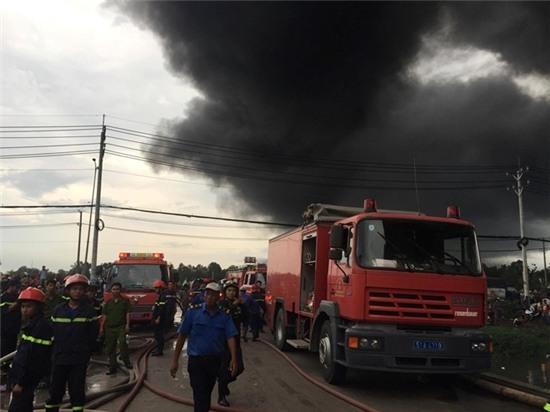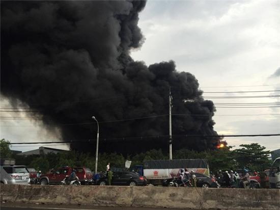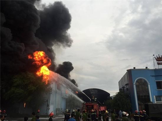 Lúc 15h, lửa vẫn bao trùm cả nhà máy. Cảnh sát PCCC đã điều 10 xe chữa cháy đến hiện trường nhưng ngọn lửa chưa có dấu hiệu dừng lại.
