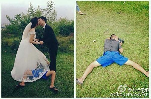 Sau khi bồi hồi ngắm những bức ảnh cưới lãng mạng, có thể bạn sẽ bật cười vì những ảnh hậu trường "cực nhọc" mà lại gây cười sau:
