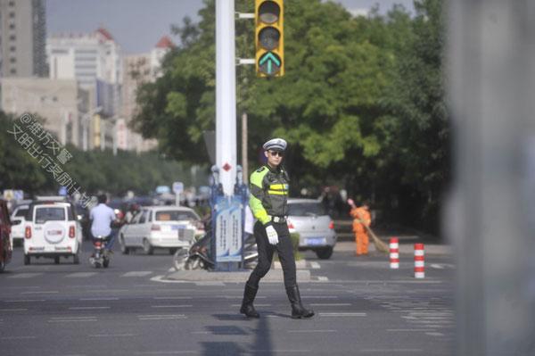 Mới đây, hình ảnh của chàng cảnh sát giao thông đẹp trai, cao ráo làm việc dưới tiết trời nắng nóng ở Duy Phường, Trung Quốc khiến trái tim thiếu nữ thổn thức.