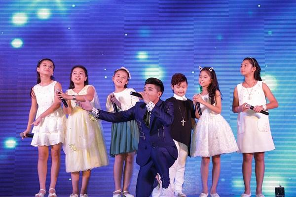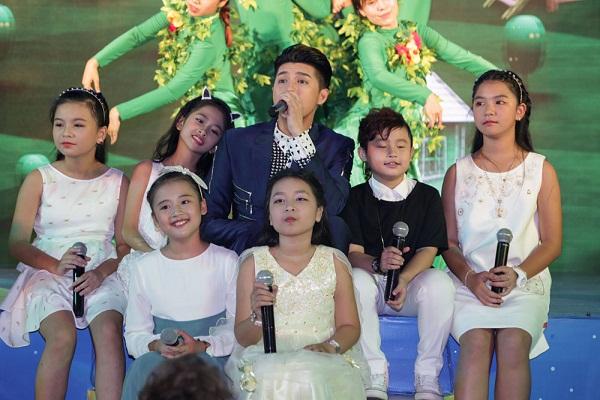 Noo Phước Thịnh cùng các học trò thiên thần ca hát vui vẻ.