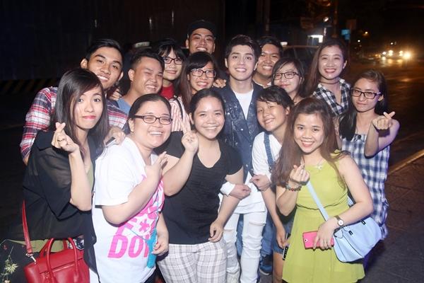 Sau khi kết thúc đêm diễn, nhiều khán giả chờ sẵn bên ngoài để chụp hình lưu niệm cùng anh.