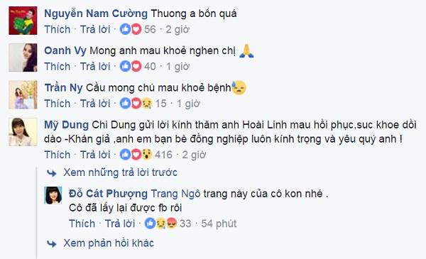 Nhiều nghệ sĩ như Vy Oanh, Nam Cường, Tố Ny... cầu mong Hoài Linh sớm khỏe lại.