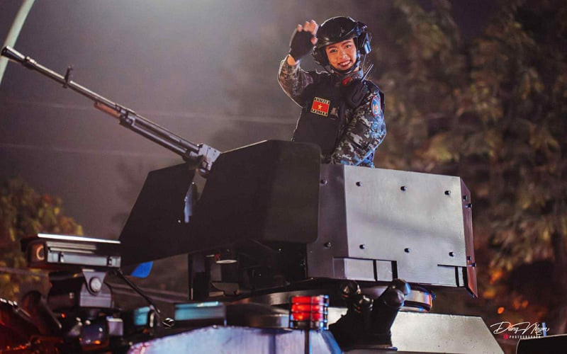 Theo tìm hiểu, nữ chiến sĩ đó là Nguyễn Ngân Hà (SN 1997, quê Hòa Bình, nay là tỉnh Phú Thọ). Ngân Hà chia sẻ với PV VietNamNet, cô thuộc khối xe đặc chủng của lực lượng Công an nhân dân.
