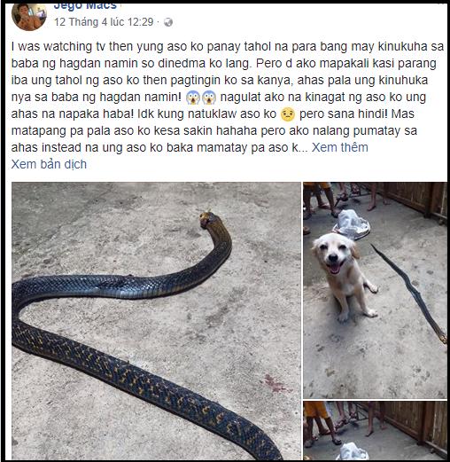 Bài đăng được viết bởi Jego Macs, kể về sự hy sinh của chú chó tên Moana của mình. Theo đó, trong lúc anh đang coi TV trong nhà thì bỗng nghe thấy tiếng sủa ầm ĩ. Khi ra ngoài xem, Jego đã thấy chú chó cưng của mình đang vật lộn với một con rắn hổ mang chúa. Moana đã giết được rắn hổ mang, và nhìn cậu chủ cười trong hạnh phúc. Nhưng chỉ vài phút sau đó, chất độc đã ngấm vào người Moana và chú chó ra đi trong tích tắc.