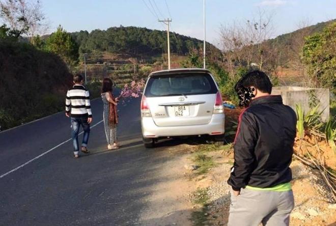 Xuống tời hồ Tuyền Lâm, nhóm của anh T bắt gặp đoàn khách đi xe ôtô 7 chỗ BKS 86A-042… dừng xe bên đường xuống chụp hình hoa mai anh đào.