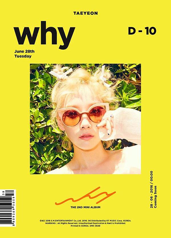 Sáng nay 20/6, SM Entertaiment đã chính thức tung những hình ảnh cuối cùng cho sự trở lại sắp tới của cô nàng trưởng nhóm SNSD - Taeyeon. Ca khúc chủ đề cho mini album thứ 2 của Taeyeon là "WHY". Đây là một ca khúc kết hợp giữa R&B và EDM chính vì vậy khác với "I", những hình ảnh cho "WHY" vô cùng bắt mắt và rực rỡ hợp phong cách mùa hè.